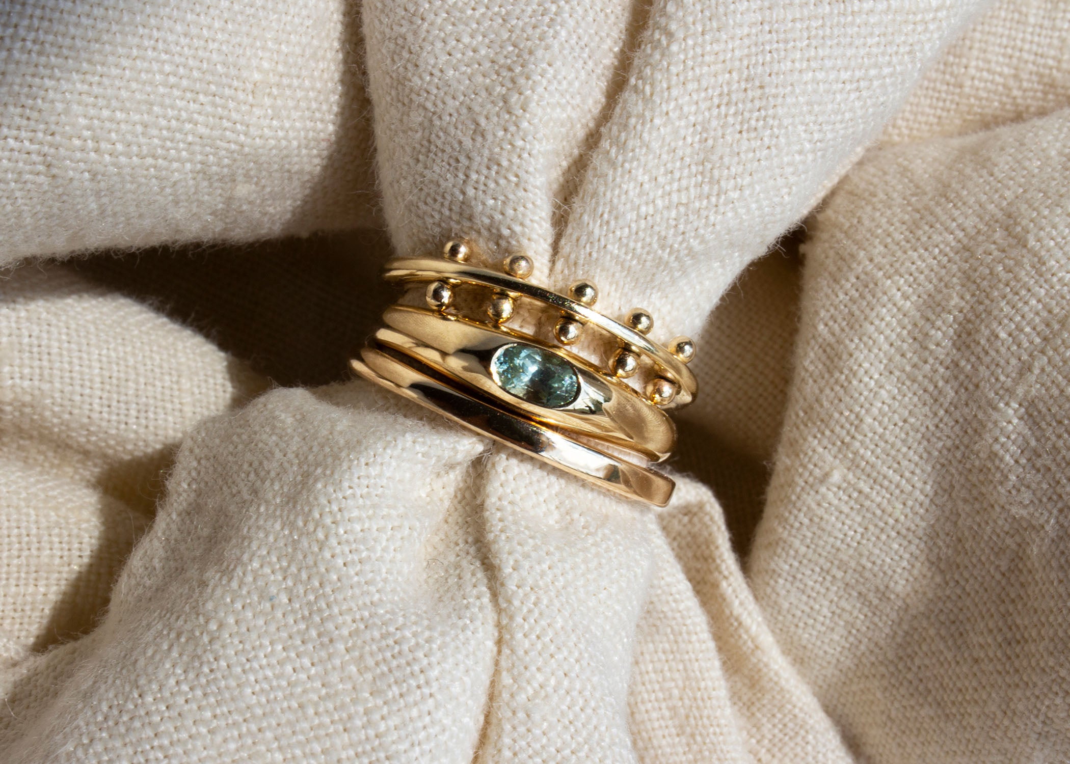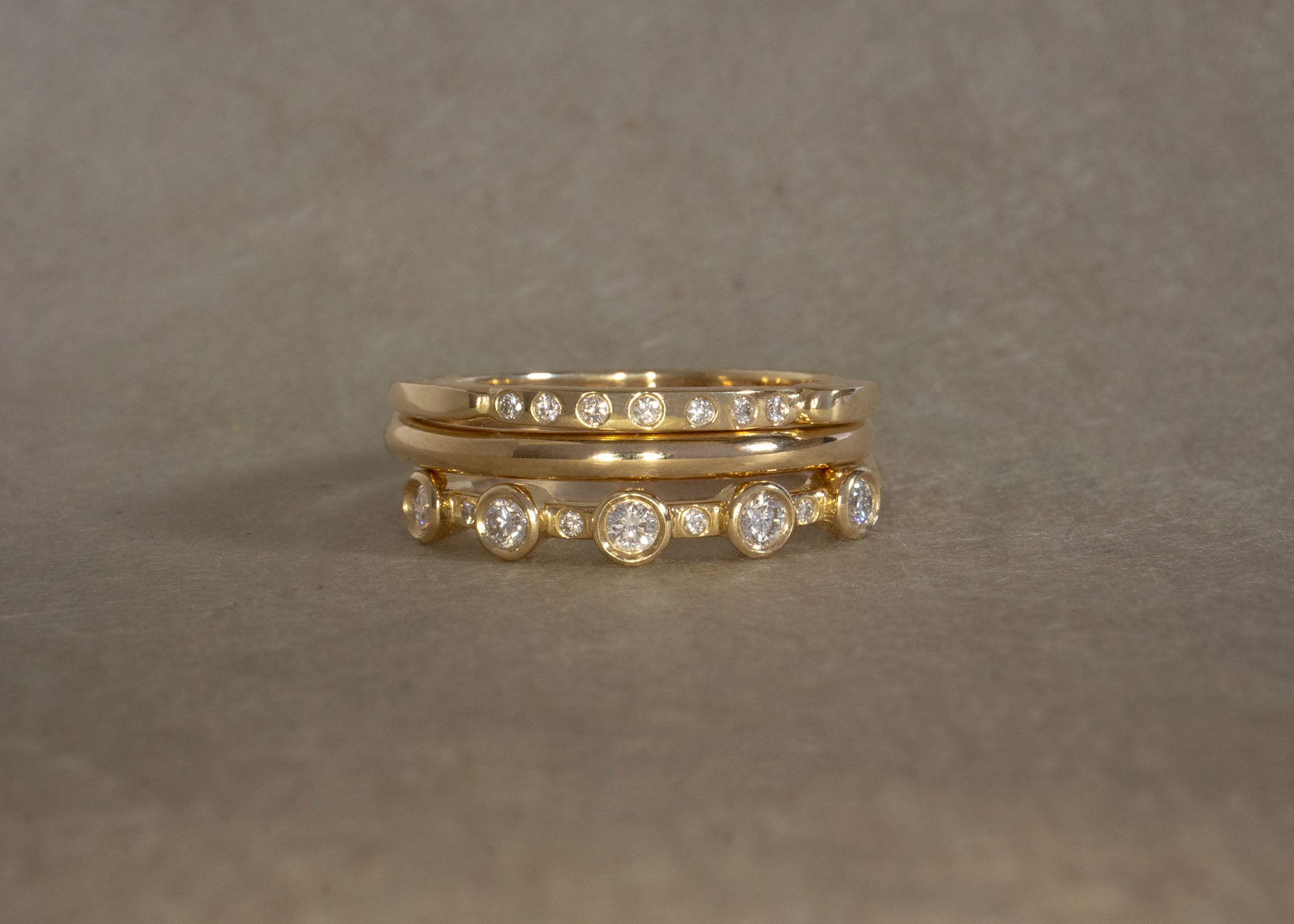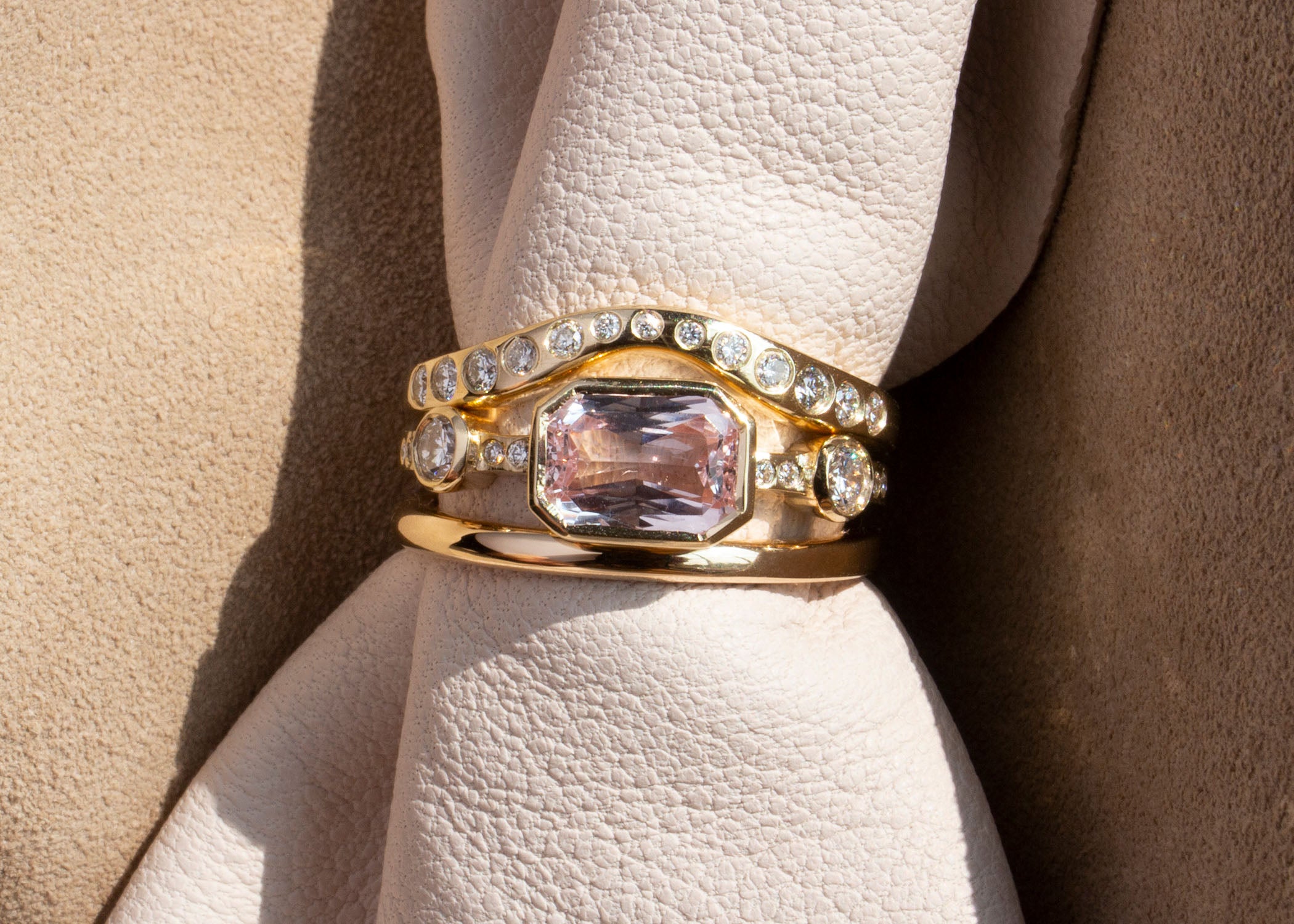 The dynamic band, an M. Hisae signature. A beautiful genesis of movement out of static, geometric forms. This design reflects upon the idea of embracing and flowing seamlessly through whatever life presents us. Every turn is a right turn. Two forms become one. This sentiment is especially reflected in love relationships, making it a beautiful, meaningful, and sleek wedding band.