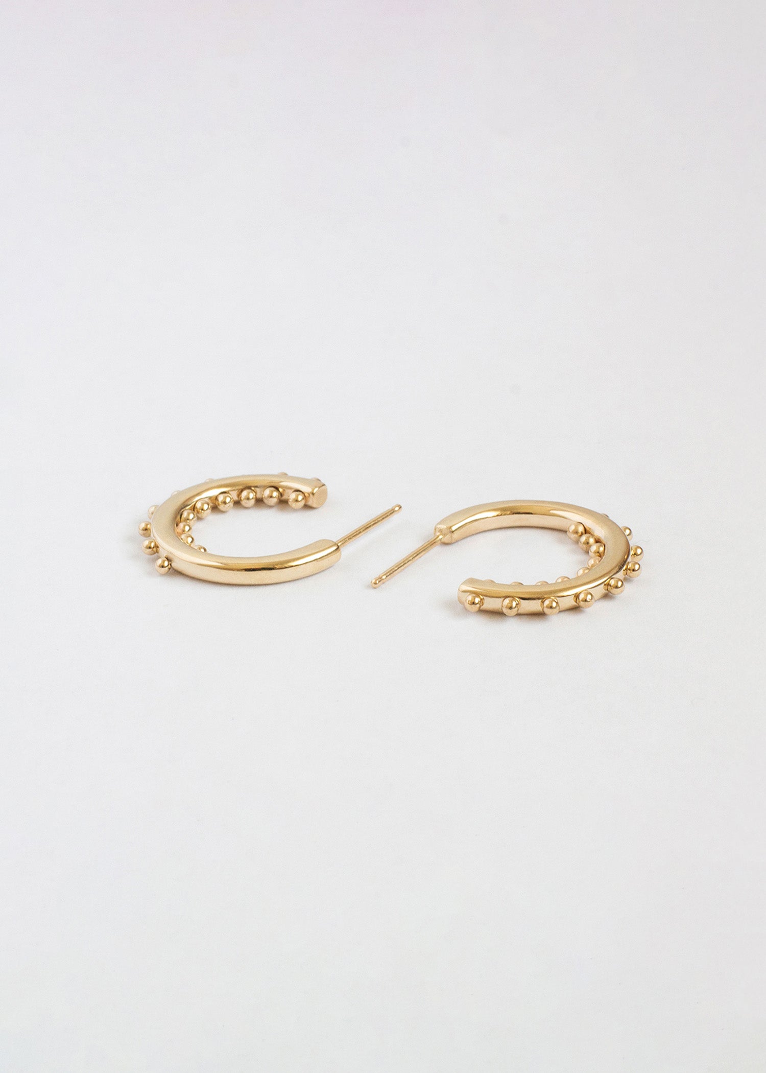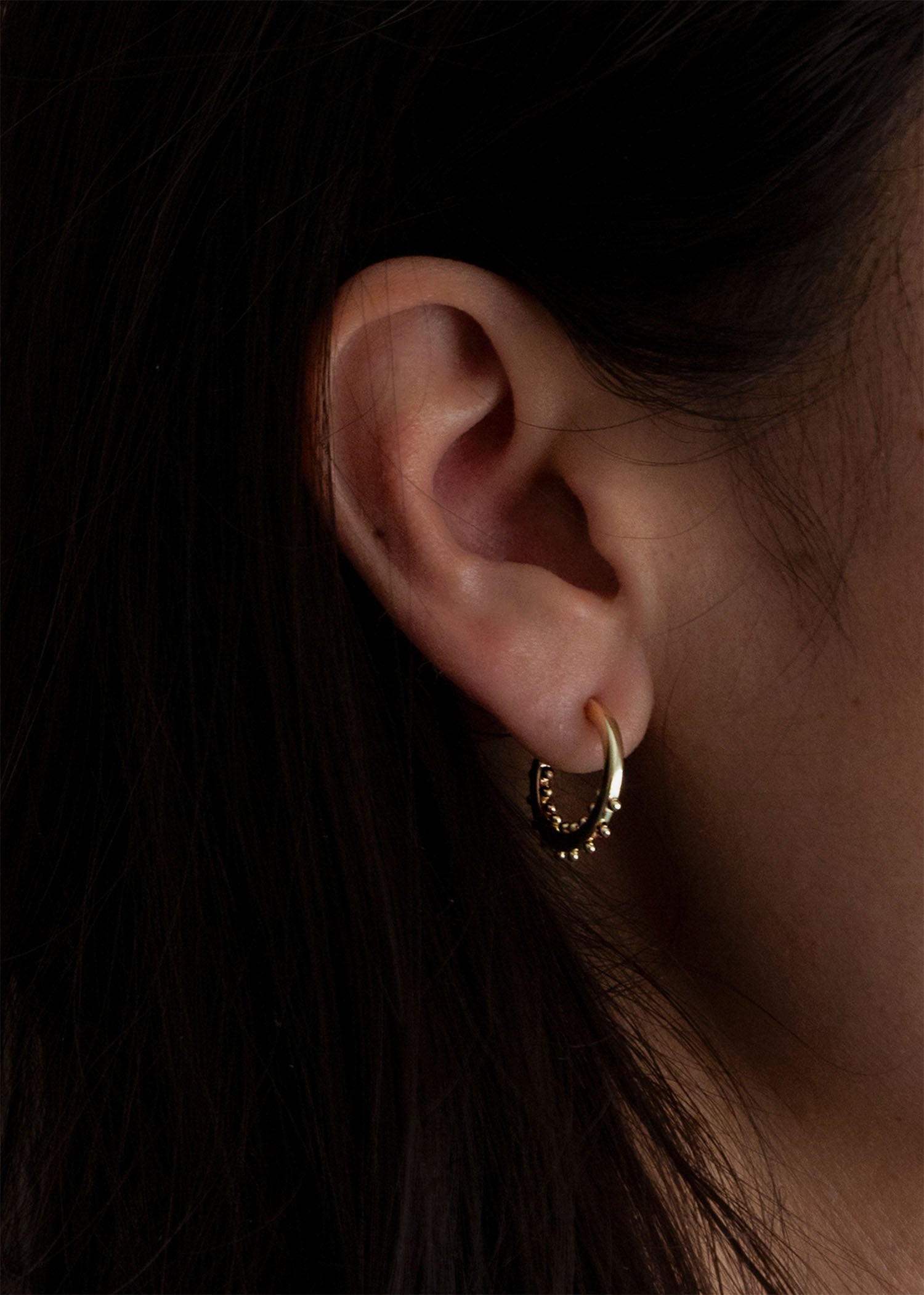 Here, beaded elements reminiscent of the ancient technique of granulation. The beads create an eye-catching update on your classic hoop.