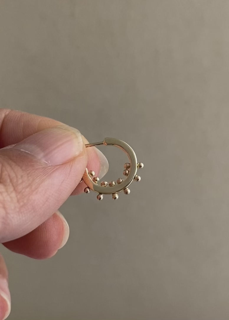 Here, beaded elements reminiscent of the ancient technique of granulation. The beads create an eye-catching update on your classic hoop.