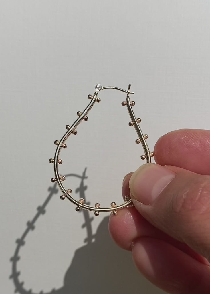 The Kumis are a beautiful embrace of primitive artistry and metamorphosis. The bases are created using the lost wax casting method, and each bead is melted one by one, laced through a teardrop of solid gold. I like to think of each bead as a bud on a tree: with a strength lost on us, transmuting the death of winter, emerging as new life. The Kumi is my favorite earring and a chameleon of sorts, adding that perfect amount of personality however you style it. They bring that little bit of edge you're always going for. See the full Kumi Earring suite here.