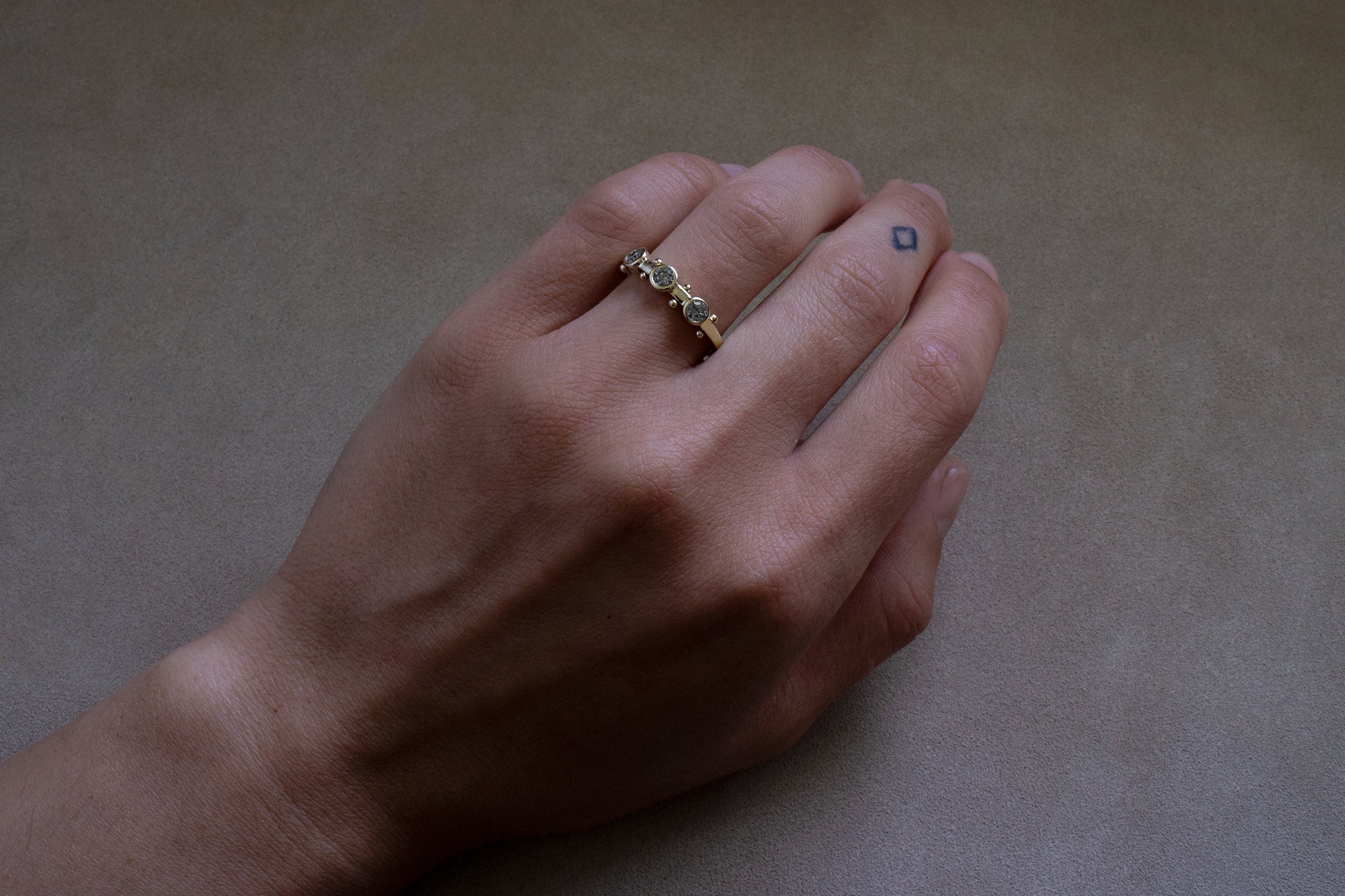 In Stock | 3-Stone Grey Diamond Koemi Ring