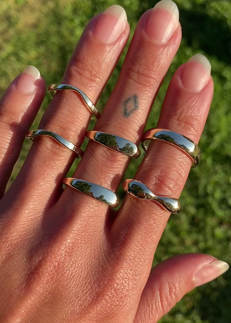 The un-classic gold band with clean asymmetry and soft substance. Also see our best-selling diamond-encrusted version, the Lila Suprima Ring, here.